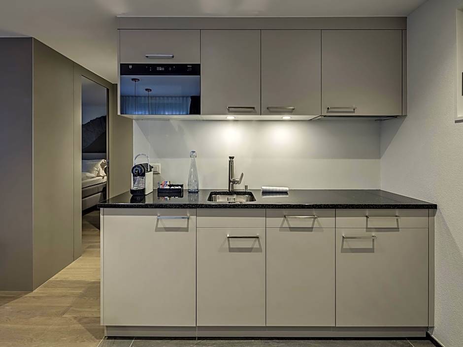Royal Suite with twin or double bed (35-50 m2) partly with balcony, mountain view, shower & tub. Mini-bar, safe, flatscreen TV, phone, Nespresso, free WiFi. Customized rooms, may differ from the pictures